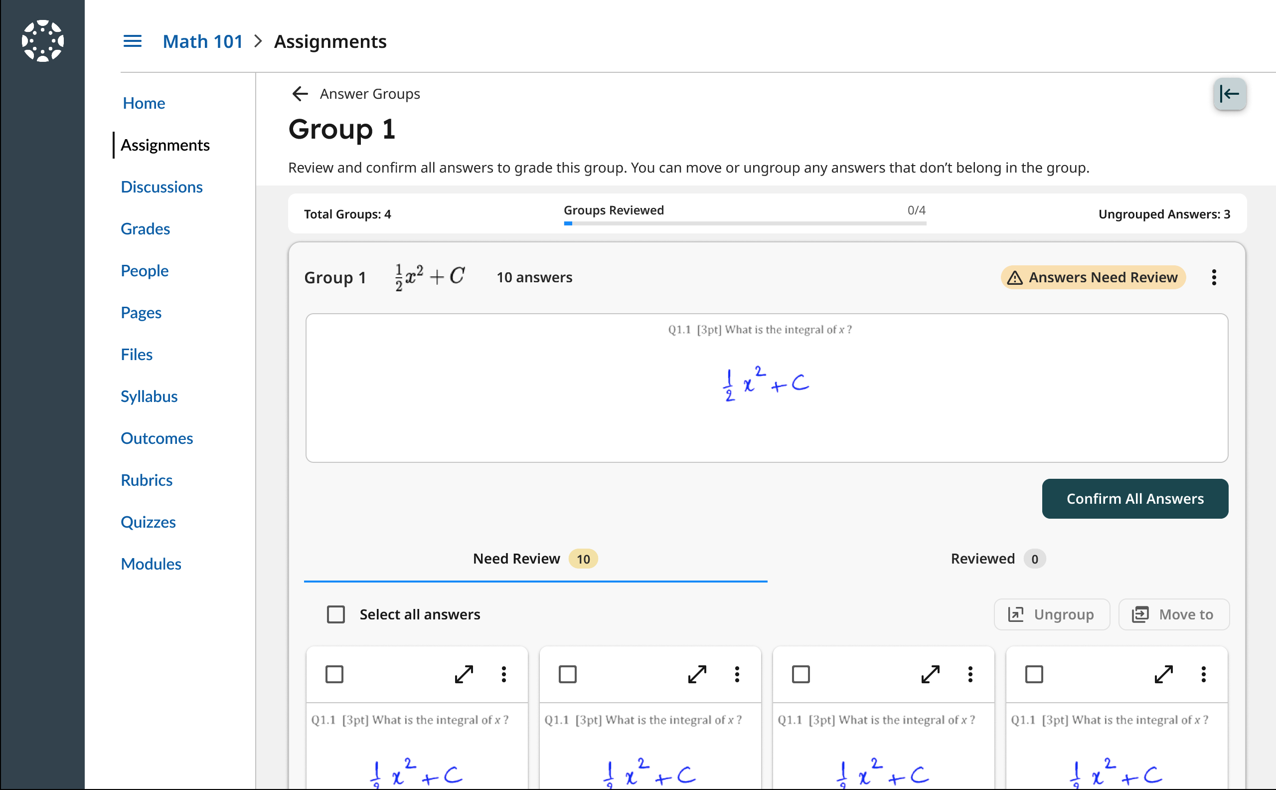 AI-assisted grading and answer grouping